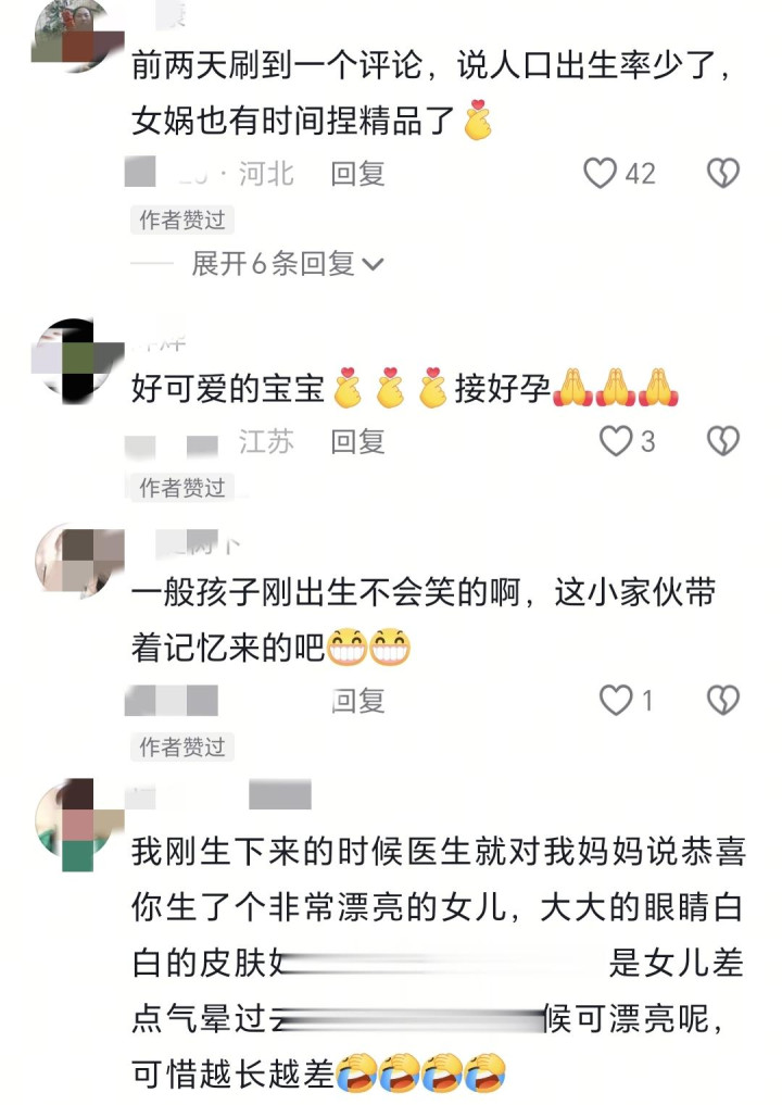一个网友就提到:人口出生率少了,女娲娘娘也有时间捏精品了。